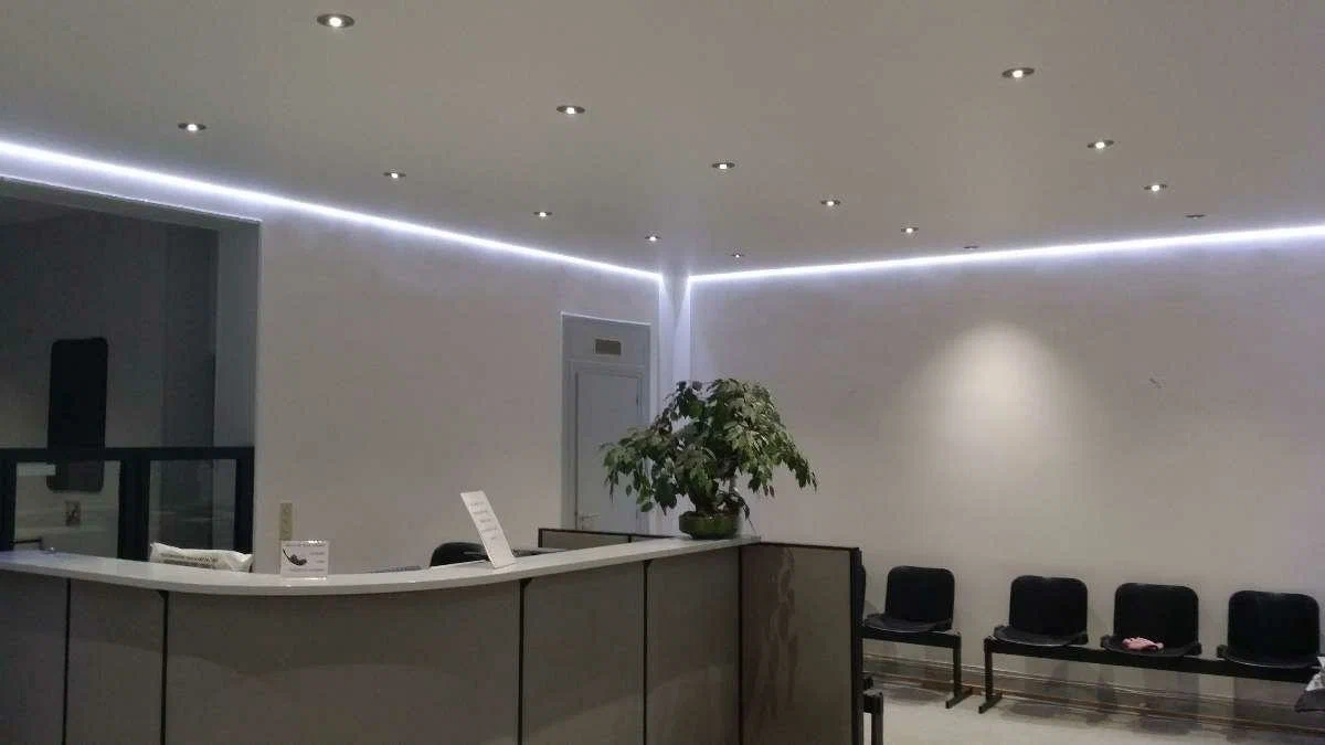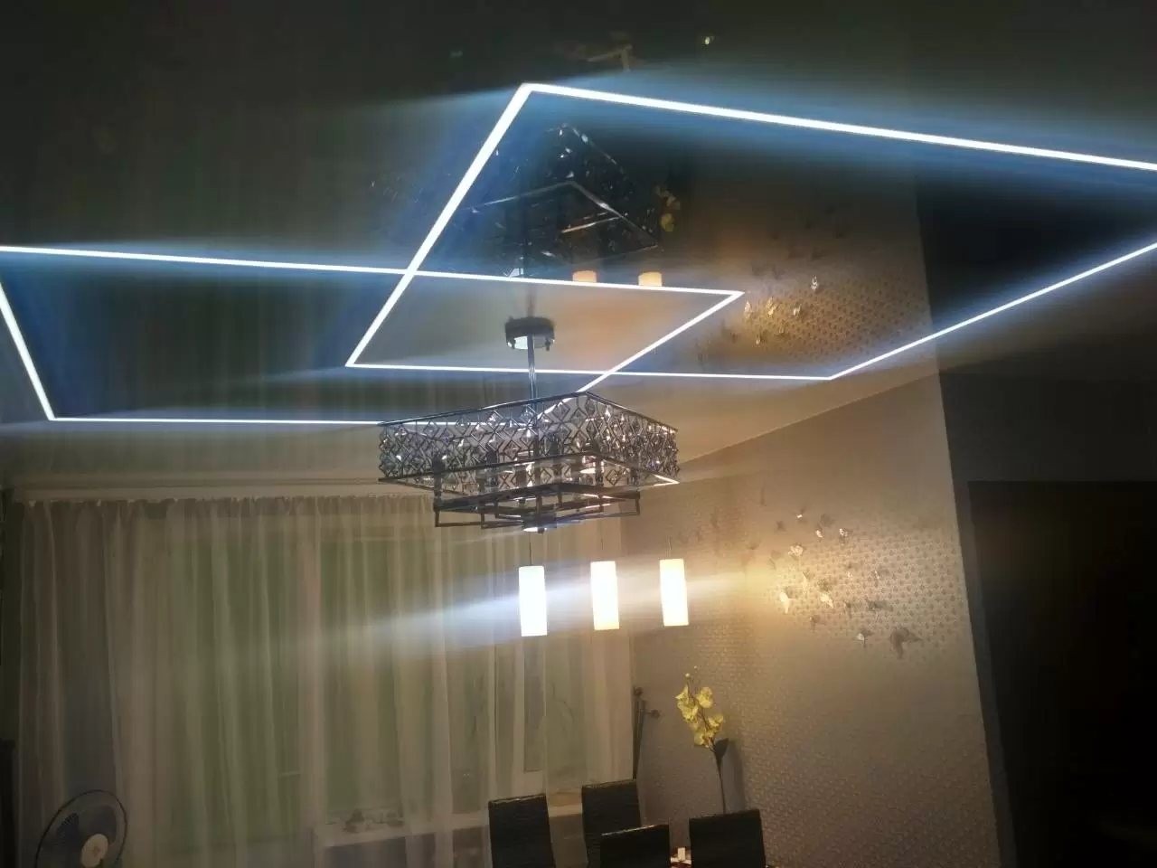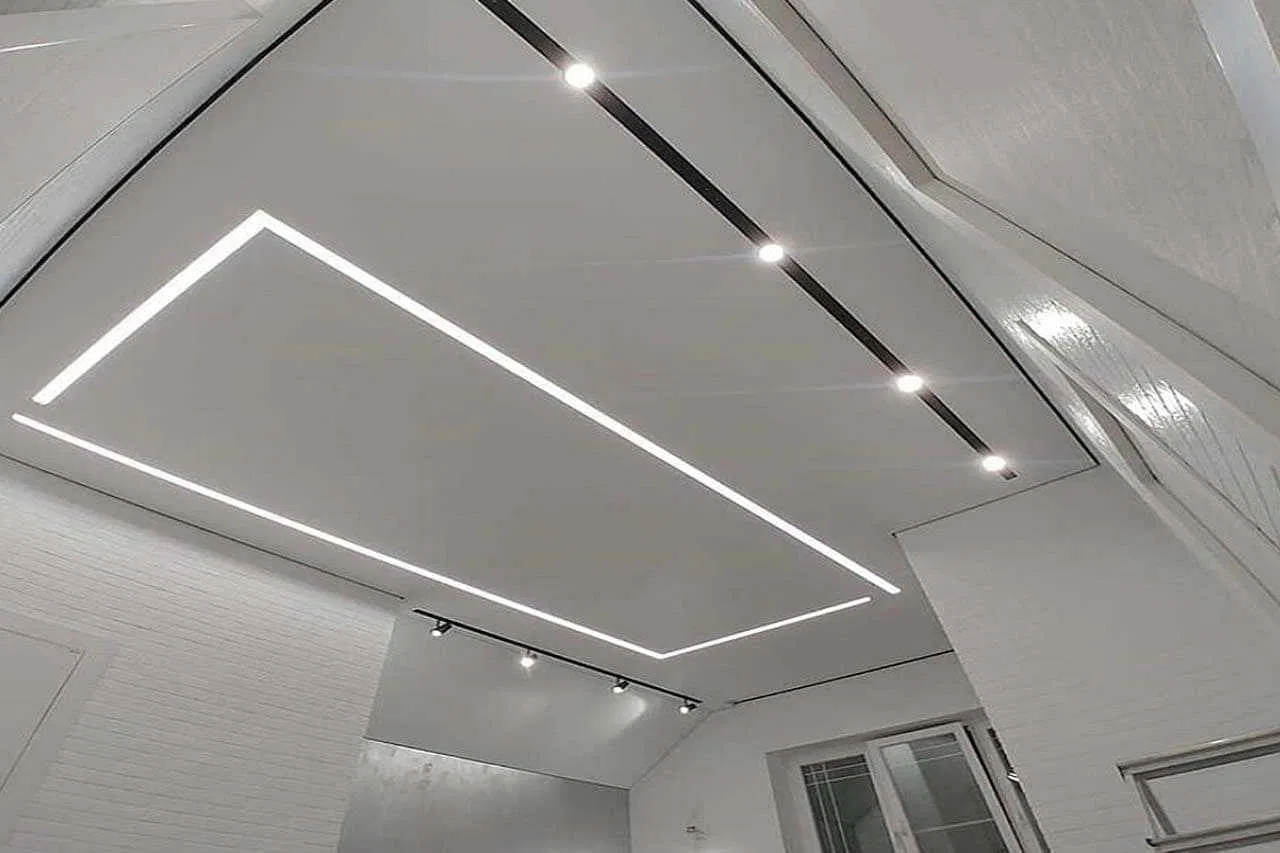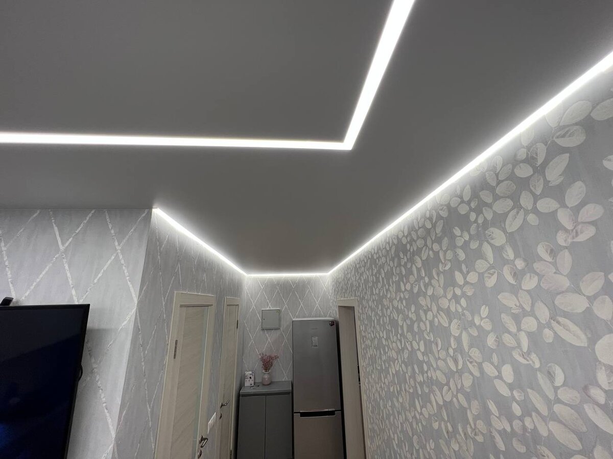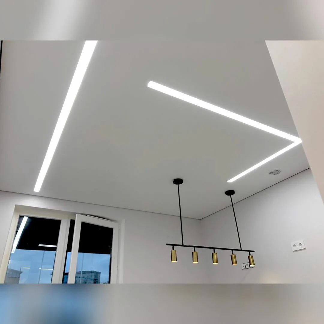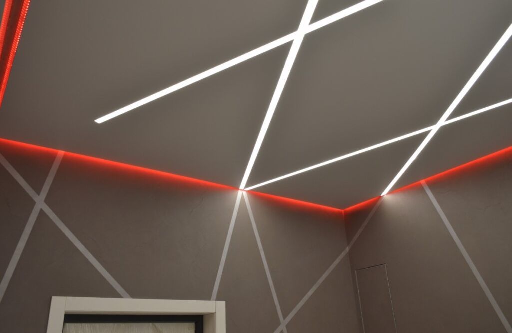 Световые линии на натяжном потолке – ультрасовременное решение, сочетающее стильный дизайн и функциональное освещение. Тонкие светящиеся линии создают геометричные узоры, подчеркивая эстетику интерьера. Преимущества:;
