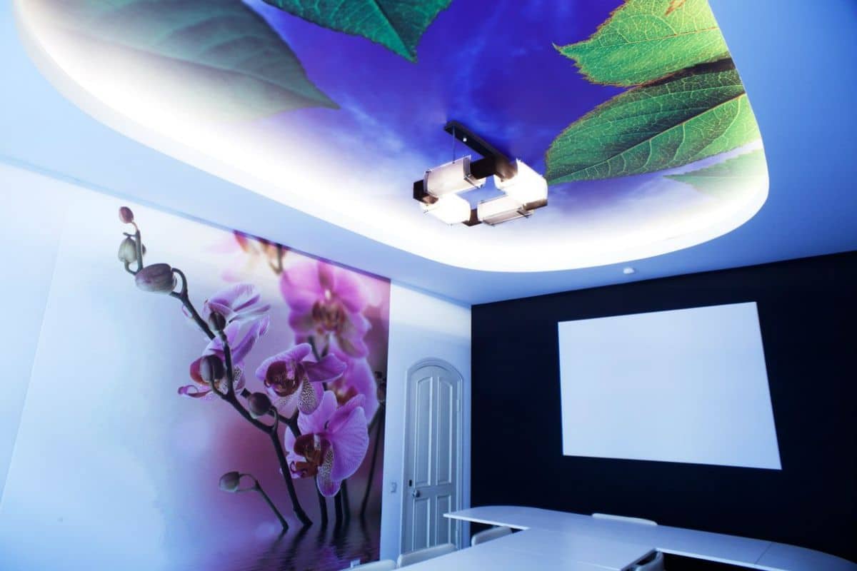 Натяжные потолки с фотопечатью – это яркий дизайнерский ход, превращающий потолок в произведение искусства. Они идеально подходят для помещений, где нужно создать акцентную зону или нестандартную атмосферу.;