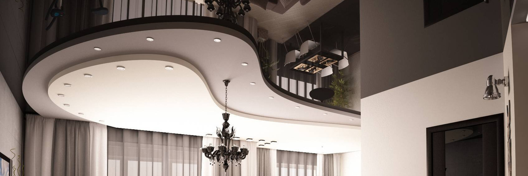 Двухуровневый натяжной потолок – стильное и функциональное решение для создания выразительного дизайна интерьера. Комбинация уровней позволяет зонировать пространство, скрывать коммуникации и воплощать смелые архитектурные идеи.;
